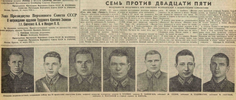 В газете «Правда» 12 марта 1942 года была опубликована статья лётчика «7 против 25». Командиром эскадрильи, вступившей в неравный бой с фашистами, был земляк Ферапонта Петровича, саратовец Борис Николаевич Ерёмин. До войны он работал в Саратове на заводе «Серп и молот». В этом бою семёрка советских пилотов сбила пять вражеских самолётов и в полном составе вернулась на свой аэродром. В одной из статей, в которой описывался этот бой, автор писал, что солдаты в окопах «буквально до дыр зачитывали газеты с этим сообщением». Именно Б.Н. Ерёмина Фёдор Петрович выбрал пилотом для подаренного истребителя.
