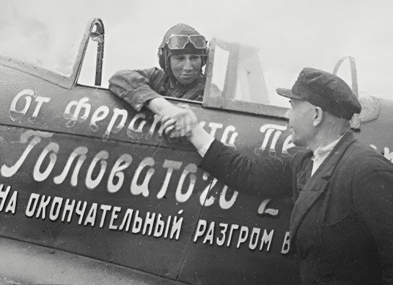 «Военный Совет ВВС сердечно благодарит Ф. П. Головатого за его патриотический почин. Деньги просим внести в госбанк, в фонд обороны. Копию квитанции вручить военпреду завода, выделить один из облётанных самолётов Як-1, написав на фюзеляже то, что просит колхозник».