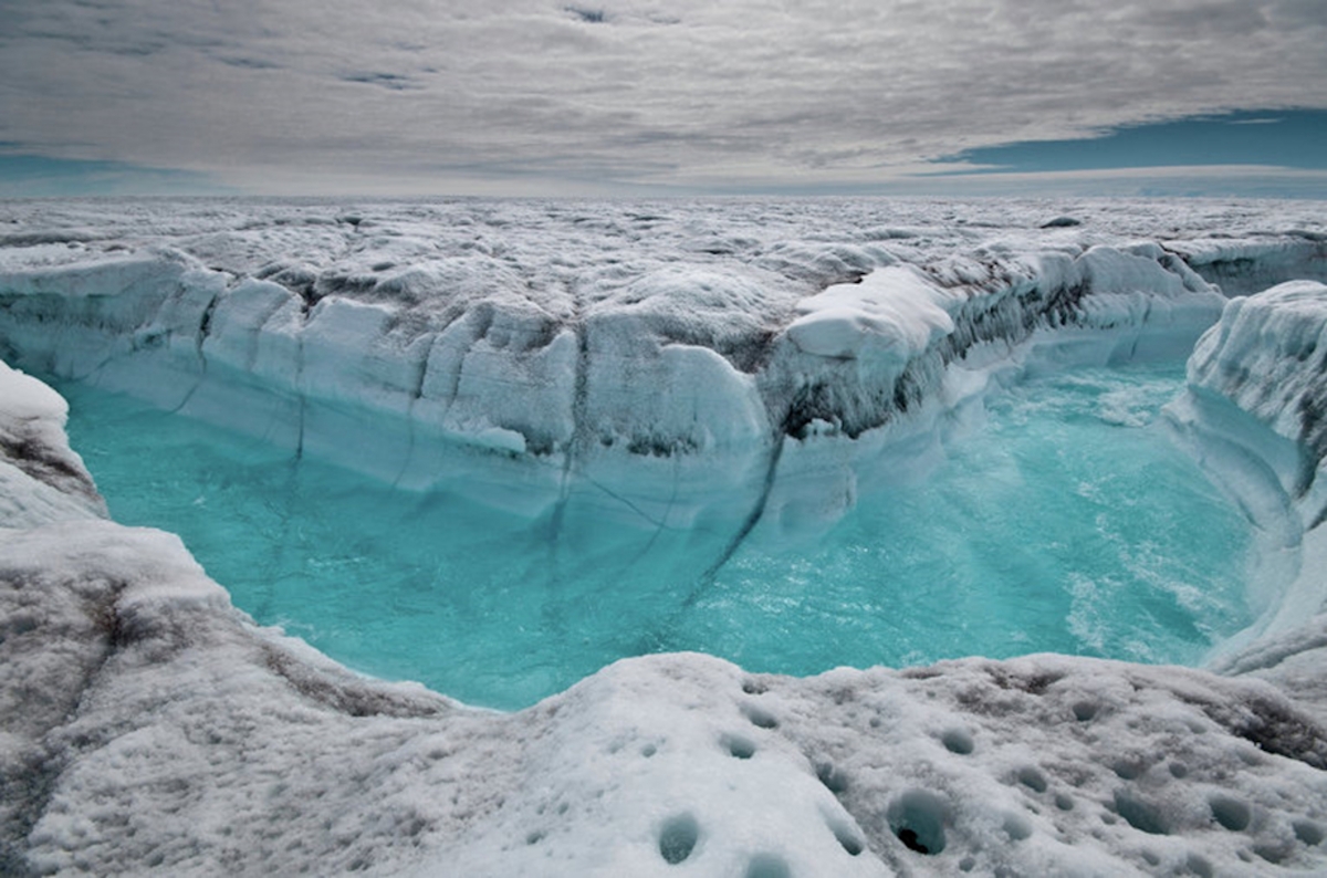 Гренландский участок «озонового хобота» подсказывает нам, что здесь 23 марта 2011 года происходило выделение озоноразрушающих газов. И мы действительно находим следы и признаки этой дегазации на фотографиях и видеокадрах ледового покрова, сделанных удивительным человеком - фотографом журнала National Geographic Джеймсом Балогом. Он провёл специальное исследование процесса таяния гренландских ледников. Об этом исследовании был снят документальный фильм «Ускользающий лёд» («Chasing Ice»), вышедший на мировые экраны в конце 2012 г. Режиссер Дж. Орловски, США.Этот фильм содержит кадры, показывающие и доказывающие процесс глубинной дегазации, а именно трубы дегазации и сажу (рис.4).