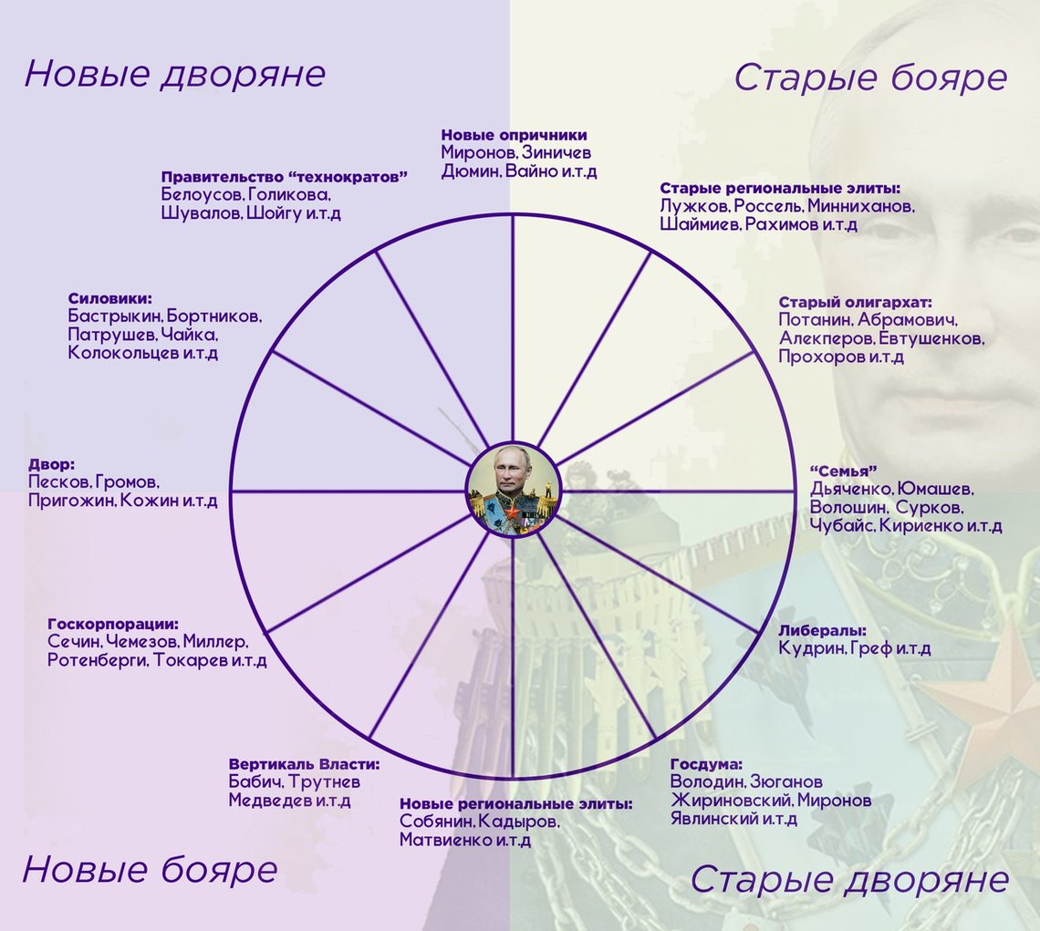 Считаю, что включение «опричников Путина» в группу «двора» методологически ошибочно, о чём свидетельствует приведённая ранее схема.